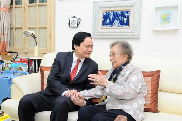 Tại đây, Bộ trưởng Phùng Xuân Nhạ đã ân cần hỏi thăm sức khỏe và gửi lời tri ân tới nguyên Phó Chủ tịch nước, nguyên Bộ trưởng Bộ Giáo dục Nguyễn Thị Bình, người thầy lớn của rất nhiều thế hệ học trò, người đã dày công vun đắp cho thành quả của sự nghiệp giáo dục, đào tạo hôm nay.